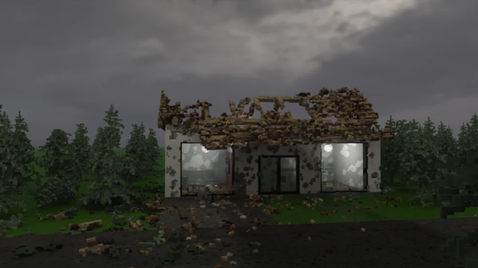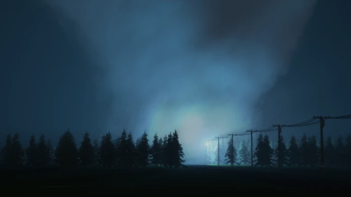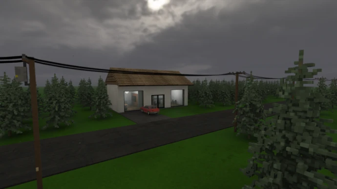 Большая карта с домом и линиями электропередач. Расположена в глухих лесах в зоне торнадо.