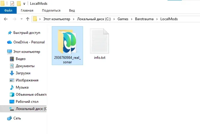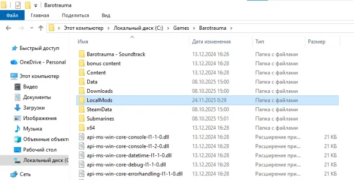 Откройте папку, где лежит ваша игра Barotrauma (там, где находится Barotrauma.exe).