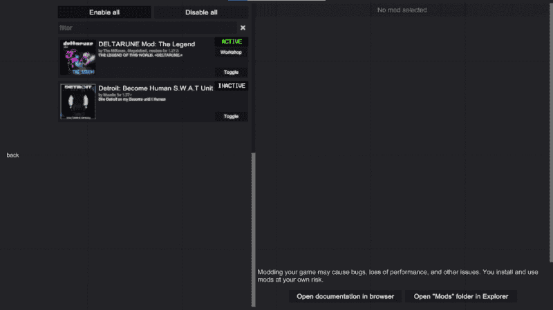 - Зайди в меню Mods и включи мод