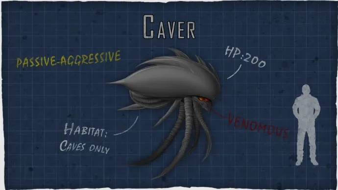 Встречается от Афотического Плато до Гидротермальных Пустошей.Пещерник: Пассивно-агрессивное существо, которое пытается избегать игроков, но при нападении может укусить и отравить морбузином.