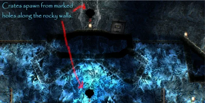 Ящики появляются необычным способом из обозначенных отверстий в скалах и кристаллах. У каждой команды на точке возрождения есть по две управляемые оборонительные турели для защиты от камперов, а также стандартные автоматические турели на случай прорыва противника.
