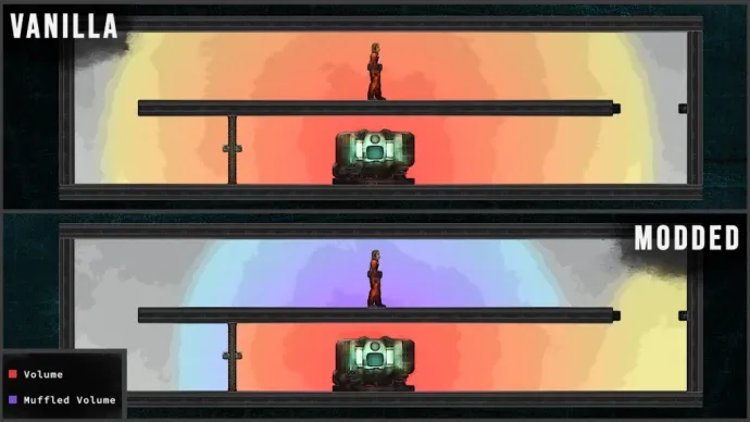 Приглушение звуков. Теперь звуки, проходя через стены, двери или воду, становятся глуше, меняют тон или фильтруются. Это создаёт ощущение изоляции: вы больше не слышите постоянный гул двигателя или вентиляции, только то, что действительно важно.