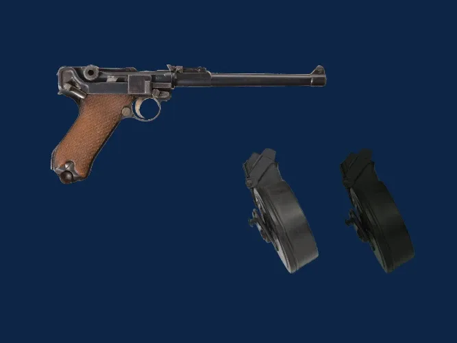 - Luger P08: урон – 21, скорострельность – 150 выстр./мин, магазин – 8 патронов, стоимость – 380 марок, высокая точность.