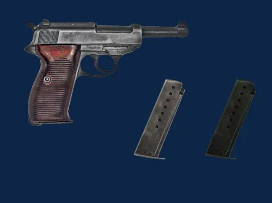 - Walther P38: урон – 21, скорострельность – 180 выстр./мин, магазин – 8 патронов, стоимость – 270 марок, средняя точность.