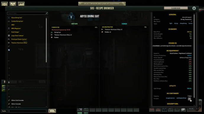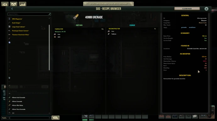 S.O.S. (Standard Operations Schematics) – это высокопроизводительный браузер рецептов и утилита отслеживания материалов для Barotrauma, аналогичная JEI из других игр. Мод предназначен для использования как в ванильных кампаниях, так и в сборках с большим количеством модов (например, Neurotrauma или BaroCraftables), предоставляя интегрированный интерфейс для навигации по игровой экономике.