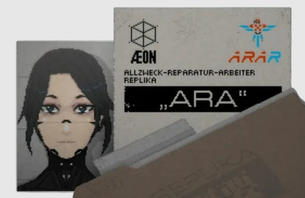 - ARA – техническая реплика для структурного ремонта, механического производства и поддержания функциональности корабельной инфраструктуры. Калиброванный обслуживающий модуль, работающий через предопределенные процедуры диагностики и восстановления.