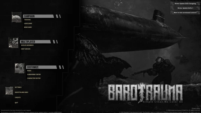 Мод «Simple Clean No Color UI» для Barotrauma заменяет большую часть стандартного интерфейса игры на специально разработанный пользовательский интерфейс в современном стиле. Он предлагает минималистичный, лишённый декоративных деталей внешний вид для игроков, предпочитающих более чистый визуальный опыт, хотя может не соответствовать оригинальной эстетике игры.