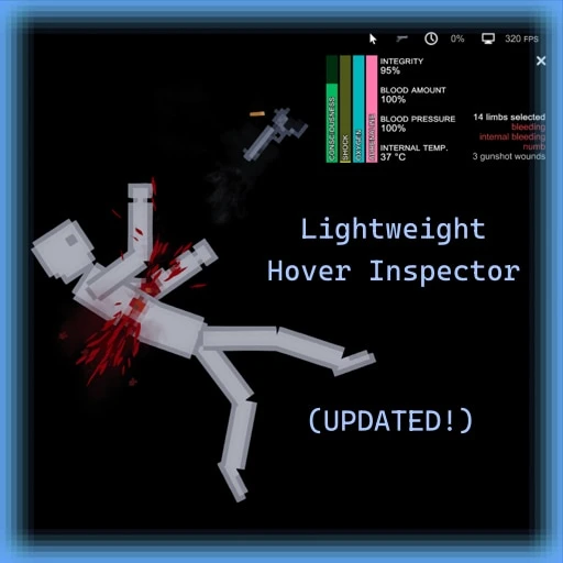 Мод «Hover Inspector [Rewrite]» для People Playground отображает меню инспектора персонажа при наведении на него курсора мыши.