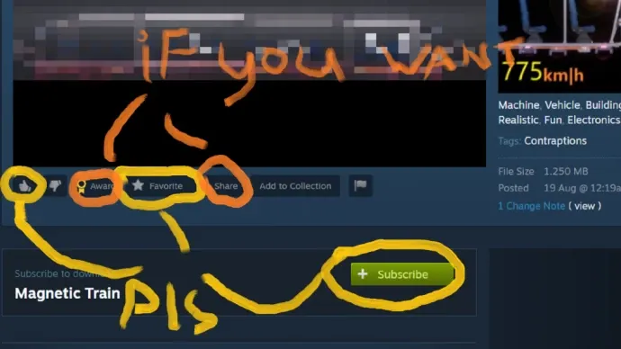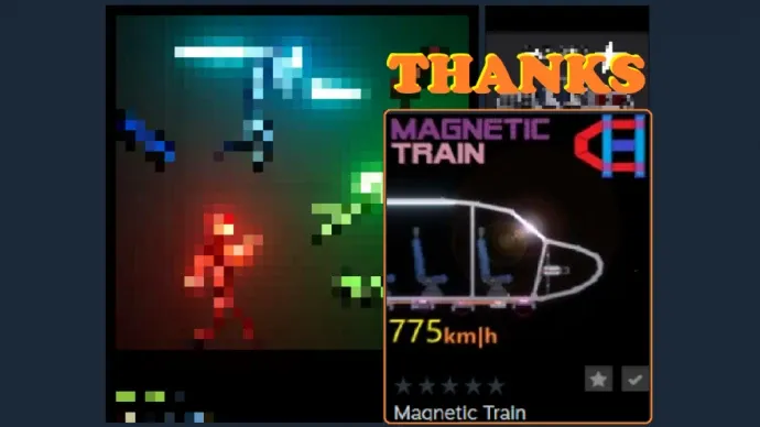 Мод «Magnetic Train» для People Playground добавляет магнитный поезд с несколькими режимами скорости.