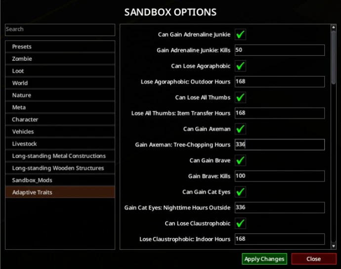 Мод «Adaptive Traits» на Project Zomboid