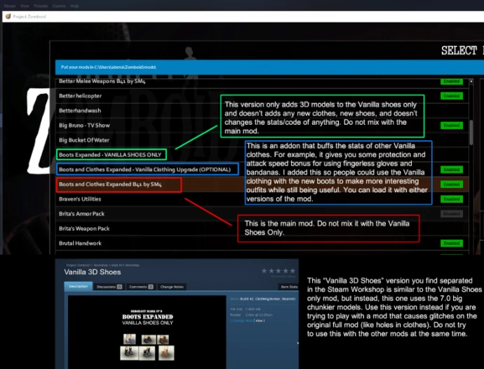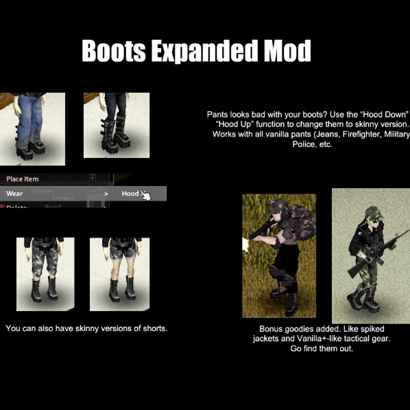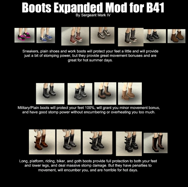 Мод «Boots Expanded 11 for B41 and B42» на Project Zomboid