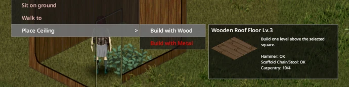 Мод EZRoof добавляет возможность установки потолков без предварительного строительства лестниц. Для использования необходимы материалы для создания пола и стул или табурет, выступающие в роли временных лесов. Опция «Установить потолок» появляется в контекстном меню только при наличии подходящего предмета.