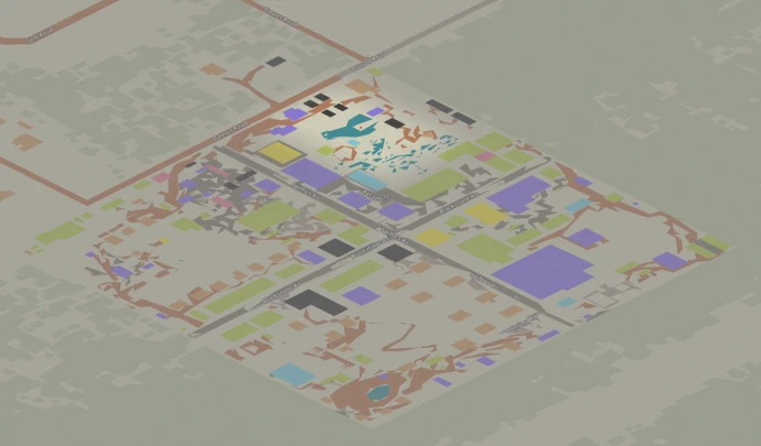Ячейка: 48,19. Локация: к югу от аэропорта Луисвилля. Карта органично интегрирована в окружающую ванильную дорожную сеть.