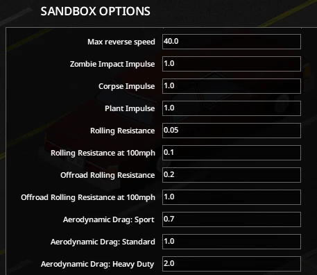 Сопротивление качению на дороге и бездорожье переработано и настраивается в опциях песочницы.