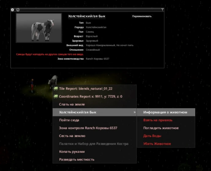 - Пункты контекстного меню для предметов, животных и других объектов.
