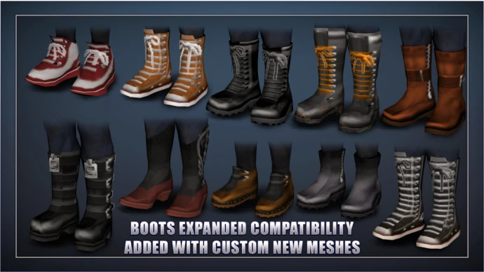 – Boots Expanded – отдельный файл, требует установленный мод Boots Expanded.