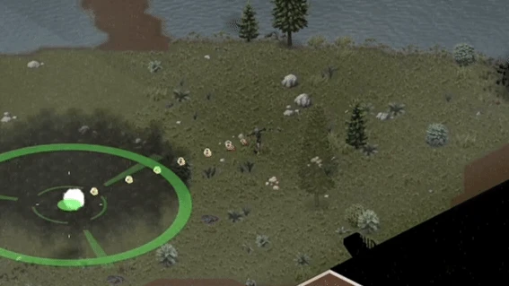 - Наносит урон всем зомби в радиусе взрыва.