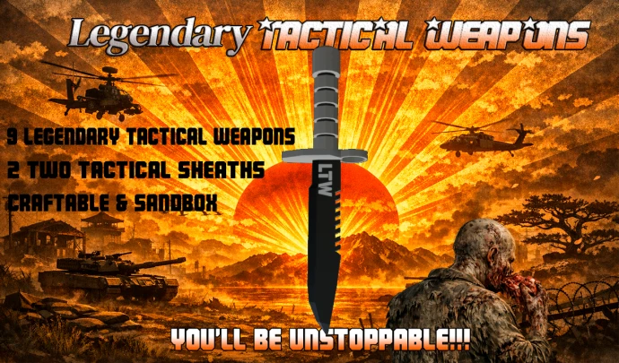 Мод добавляет в мир Project Zomboid 9 легендарных тактических оружий и 2 вида ножен для их переноски. Оружие можно найти в луте или изготовить самостоятельно после обнаружения соответствующего журнала с чертежами. Рецепт также открывается автоматически при повышении уровня навыка «Сварка металлом» (MetalWelding).