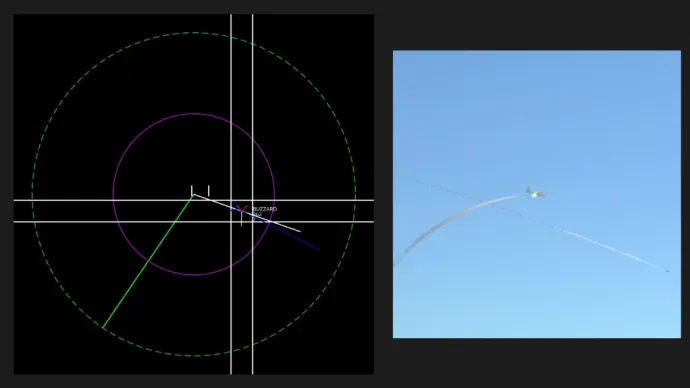 - Линия указывает скорость: чем длиннее линия, тем выше скорость цели.