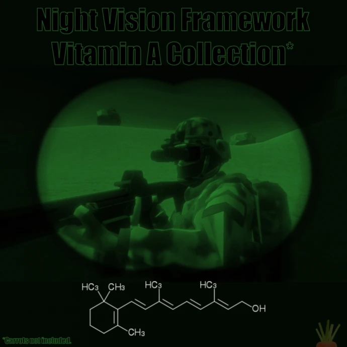 Мод «Night Vision Framework Vitamin A Collection» добавляет набор цветных фильтров ночного видения и виньеток различной формы, созданных на базе инфраструктуры Night Vision Framework.
