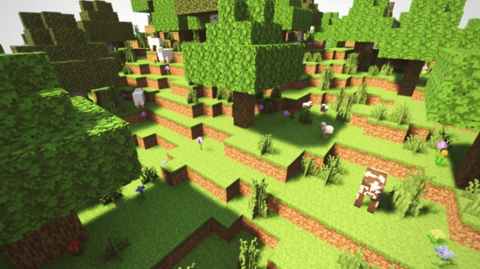 Играйте на процедурно сгенерированной карте Minecraft: цветы, рельеф, деревья, руды, камень, глубинный сланец, вода. Большая часть создана с использованием шума Перлина. Биомы будут добавлены позже.