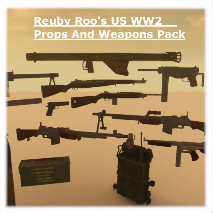 Набор реквизита и оружия армии США периода Второй мировой войны. Оружие не стреляет и предназначено для использования с модом на ragdoll-персонажей для позирования и создания скриншотов с помощью физического манипулятора.